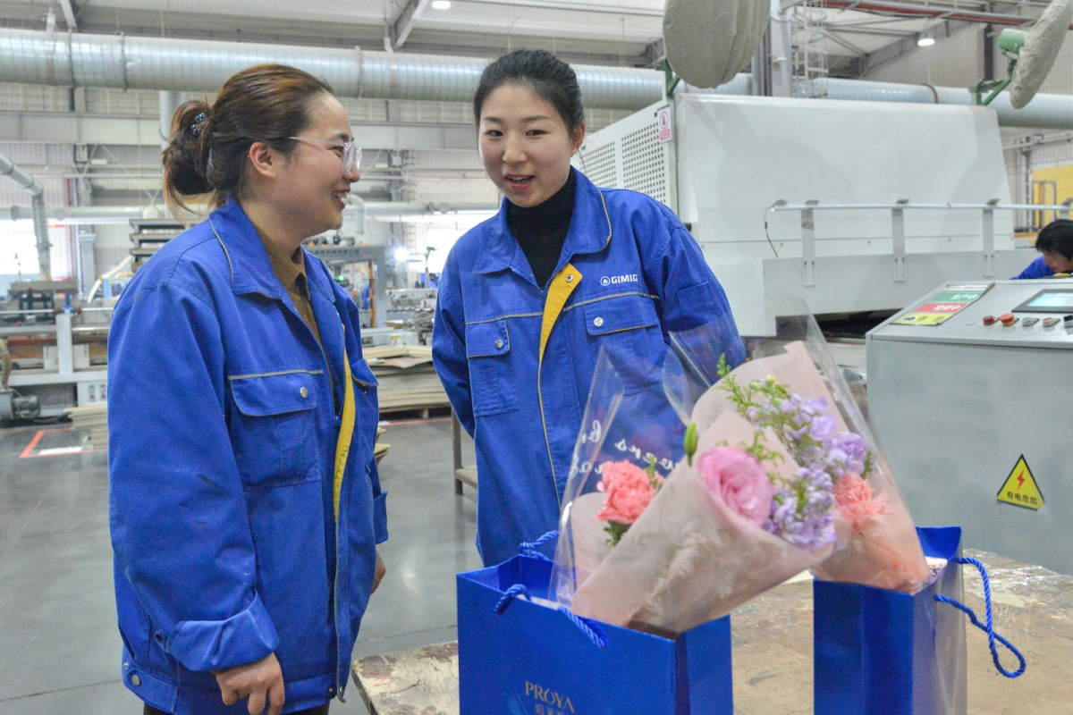 一枝枝嬌艷的鮮花與女職工明媚的笑容競相綻放,愈發(fā)煥活了“鏗鏘玫瑰”們的無限魅力,她們以昂揚姿態(tài)扎根于巨人這方熱土,爭相絢麗綻放。